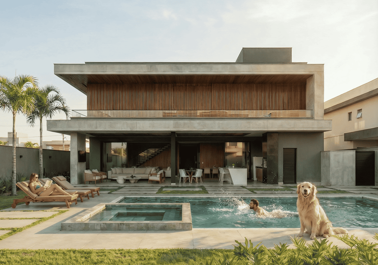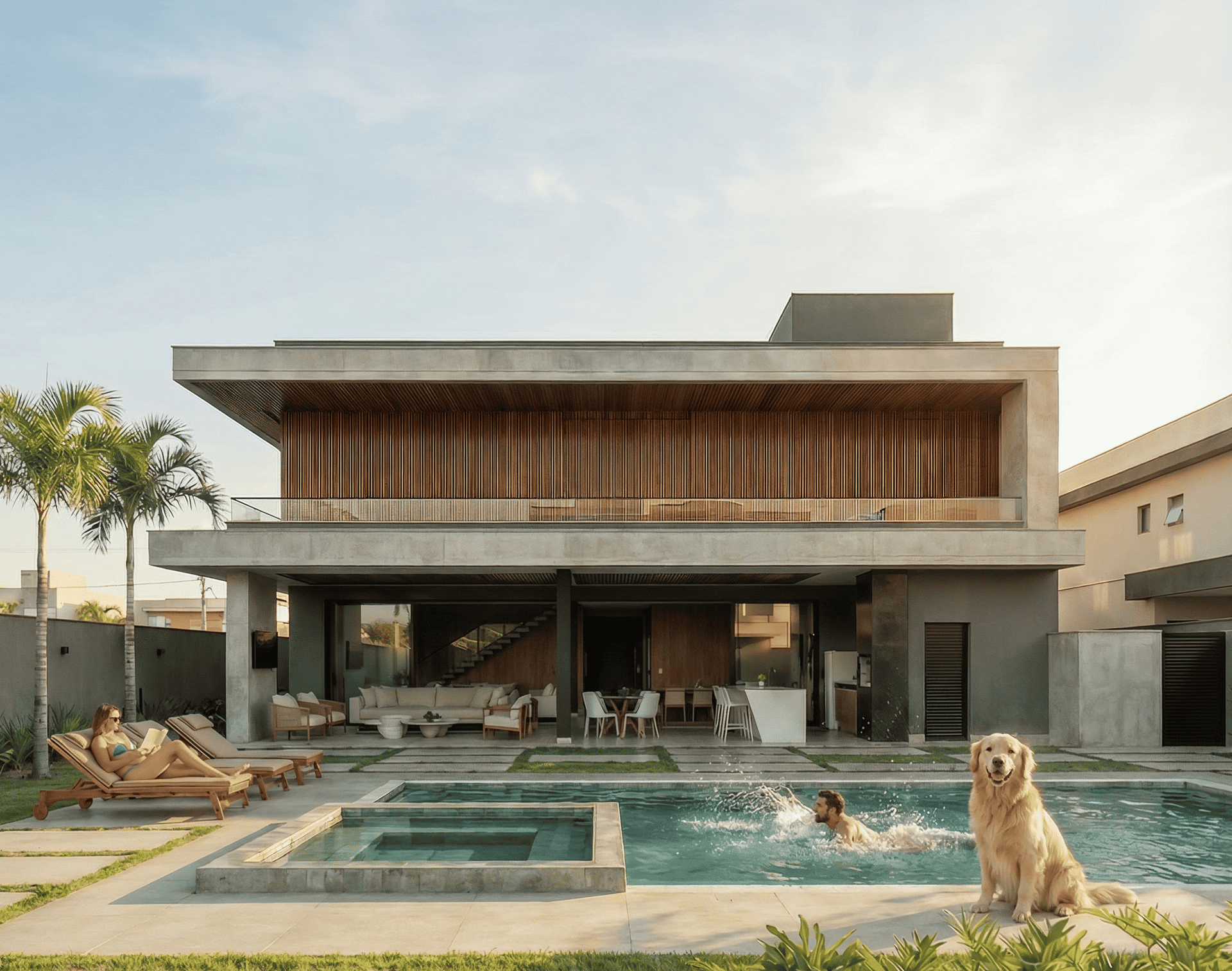 É a alma da sua casa. Planejamos toda a estrutura, volumetria e fachada, focando em funcionalidade, estética e conforto térmico/acústico. Do conceito inicial à planta definitiva.